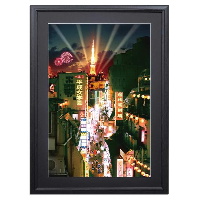 ポスター フレーム付き「夜もすがらの街 渋谷」アートフレーム 絵画 壁掛け インテリア グラフィック アートポスター 夜景 東京タワー 風景