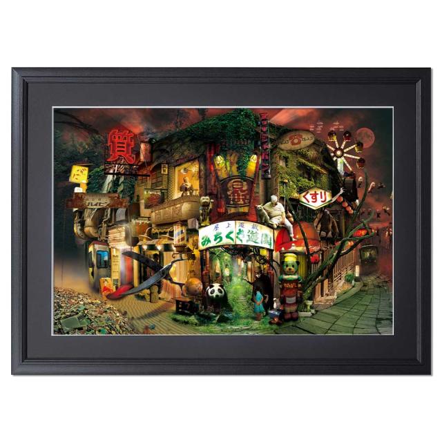 ポスター「みちくさ遊園」神楽坂 フレーム付き 壁掛け 絵 インテリア アートポスター グラフィック コラージュ 実写 額付き『まるでジブリのような世界観』レトロ 雑居 エモい 昭和 風景 写真