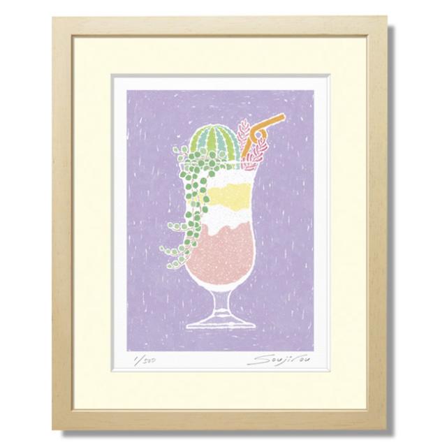おしゃれ 壁掛け 絵 インテリア 額入り かわいい 絵画 玄関 新居 新築 お祝い プレゼント 風水 版画 ミニアート 【パフェ風の多肉植物寄せ植え】 母の日