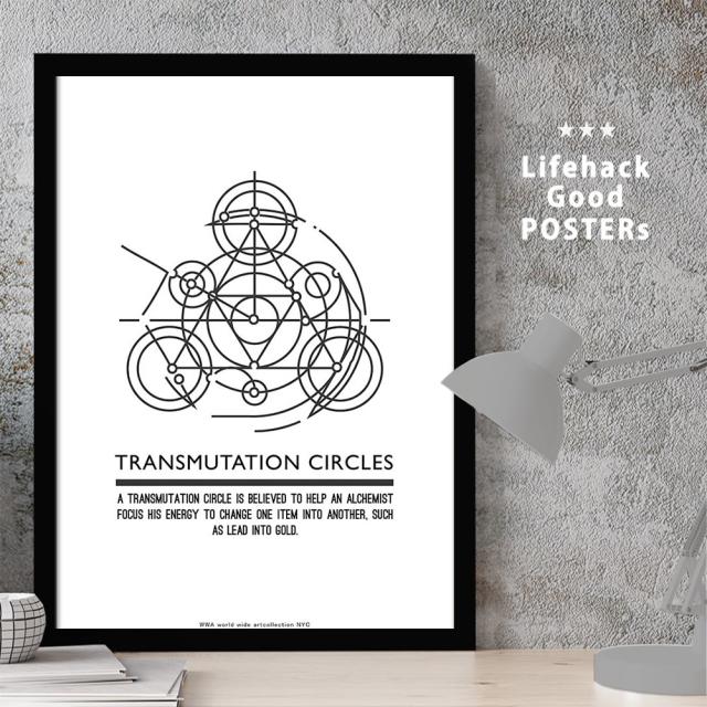 アートパネル | 高解像度 アートポスター | A3サイズ フレーム付き | 錬金術 トランスミューテーション モノクロ オマージュ アート シンボル エジプト シュメール 神話