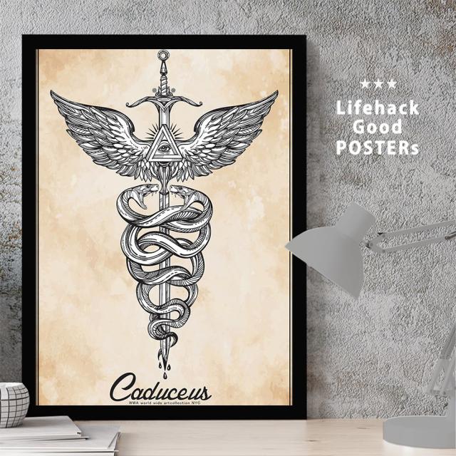 アートパネル | 高解像度 アートポスター | A3サイズ フレーム付き | 絵画 インテリア 伝令使 蛇の杖 蛇 カドケウス シンボル ヘラ イーリス エジプト シュメール 古代 神話 神 守り神