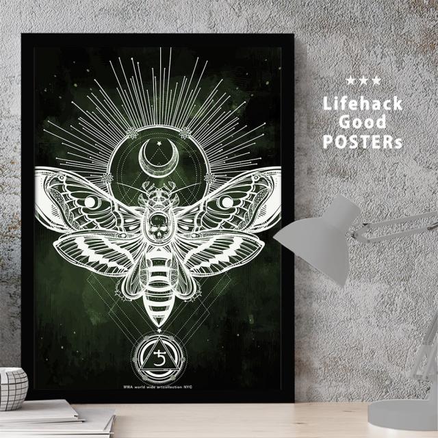 アートパネル | 高解像度 アートポスター | A3サイズ フレーム付き | 錬金術デスヘッド スズメガ 雀蛾 シンボルマーク エジプト シュメール 古代 宗教 神話 神 守り神