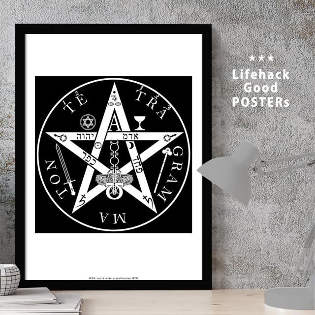 アートパネル | 高解像度 アートポスター | A3サイズ フレーム付き | テトラグラマトン ヤハウェ ペンタグラム 神聖四文字 YHWH エホバ モノトーン 白黒