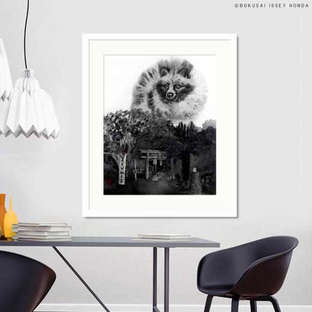 【現水画家 本田一誠 光】絵画 金長狸 金長大明神 水墨画 モダン モノトーン 内装用インテリアアート 風水 金運 商売繁盛 仕事運 狸