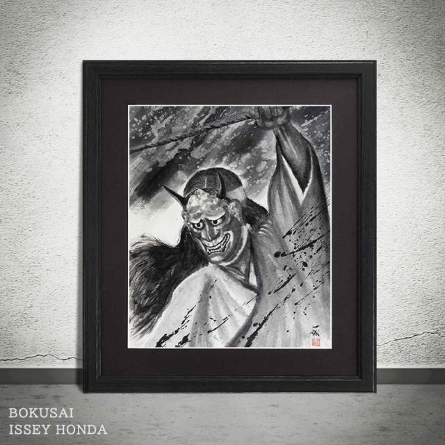 本田一誠【能楽】アートパネル インテリア モノクロ 壁掛け おしゃれ 絵 玄関 風水 和風 水墨画 般若