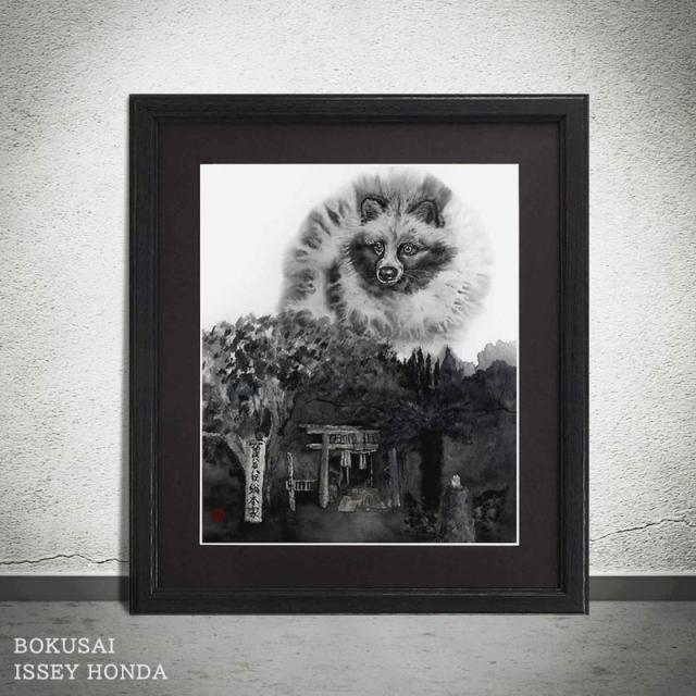 本田一誠【光】アートパネル 狸 インテリア モノクロ 壁掛け おしゃれ 絵 玄関 風水 和風 水墨画 タヌキ 金運 仕事運 商売繁盛