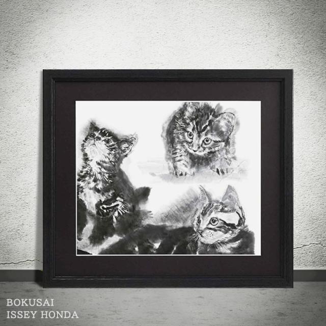 本田一誠【夢想】アートパネル 猫 インテリア モノクロ 壁掛け おしゃれ 絵 玄関 風水 和風 水墨画 ネコ