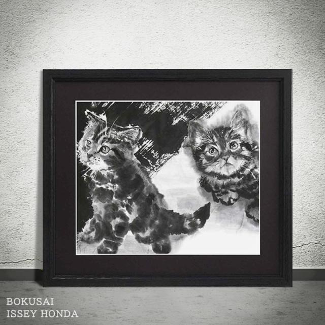本田一誠【無垢】アートパネル 猫 インテリア モノクロ 壁掛け おしゃれ 絵 玄関 風水 和風 水墨画 ネコ