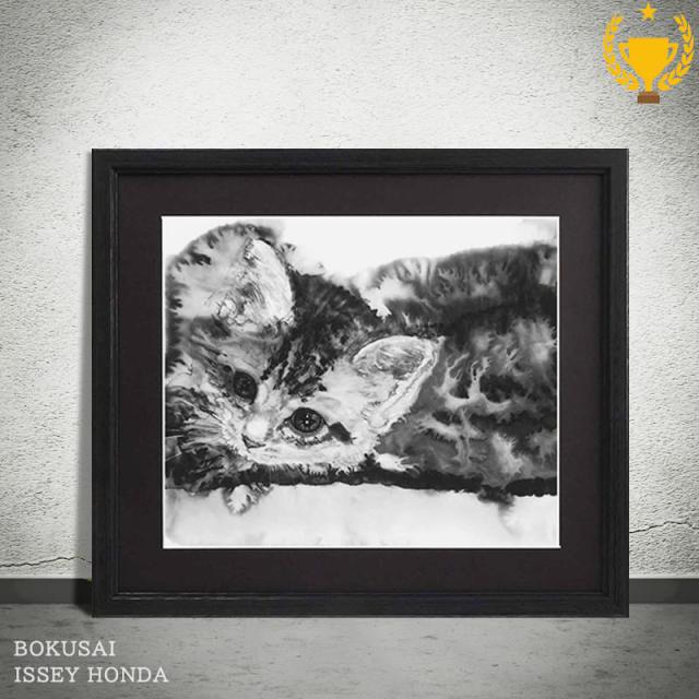 【楽天ランキング1位獲得】本田一誠【陽だまり】アートパネル 猫 インテリア モノクロ 壁掛け おしゃれ 絵 玄関 風水 和風 水墨画 ネコ