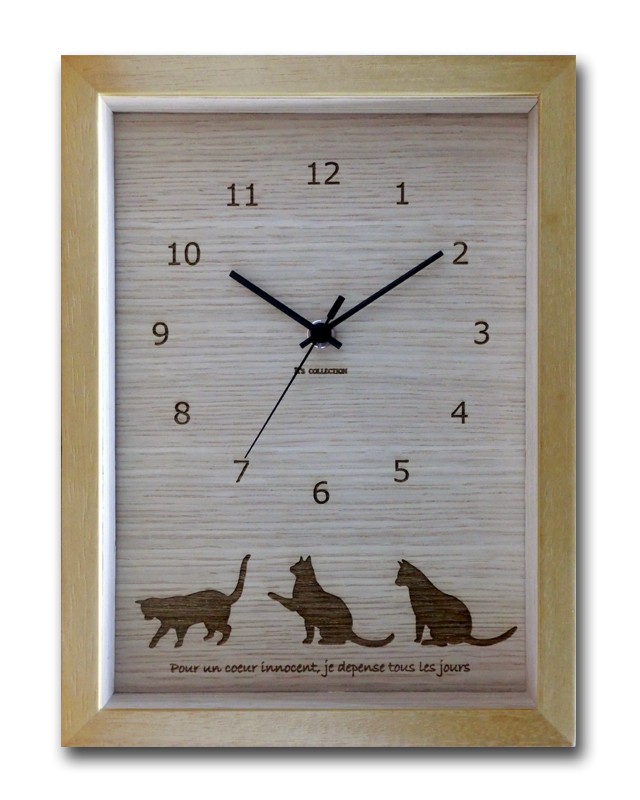 掛け時計 猫 音がしない 小さめサイズ W22cm H27cm 置いても飾れる厚み4cm 北欧 かわいい おしゃれ ナチュラル お祝い ギフト プレゼント 父の日