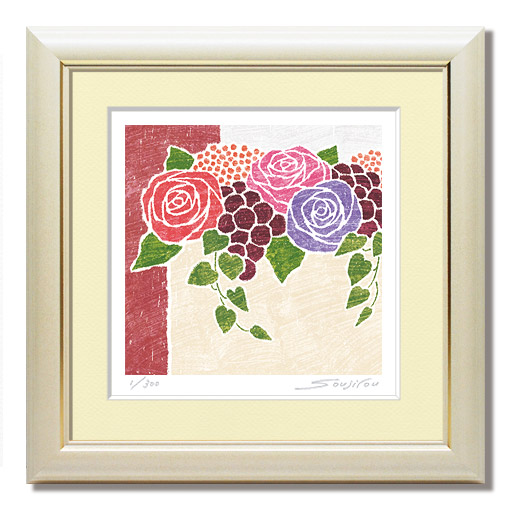 薔薇のアレンジメント絵画 版画 玄関 リビング 額入り 花の絵 プレゼント お祝い 床の間 和室 洋間 壁 アート インテリア