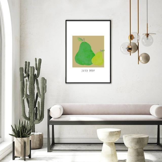 ポスター 洋ナシ A2 北欧 JuicyPear アートポスター A2サイズ おしゃれ 絵 モダン アイボリー ベージュ オフホワイト梨 緑 グリーン フルーツ 果物