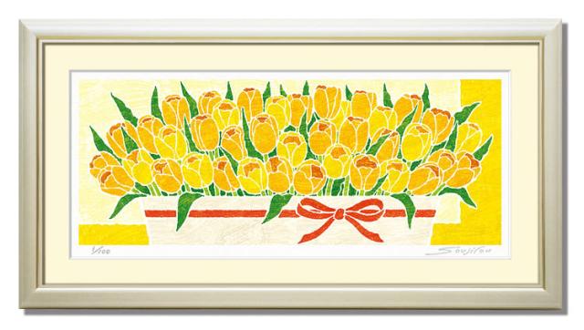 【楽天ランキング1位獲得】応援チューリップ絵画 版画 玄関 リビング 額入り 花の絵 プレゼント お祝い 床の間 和室 洋間 壁 アート インテリア 母の日