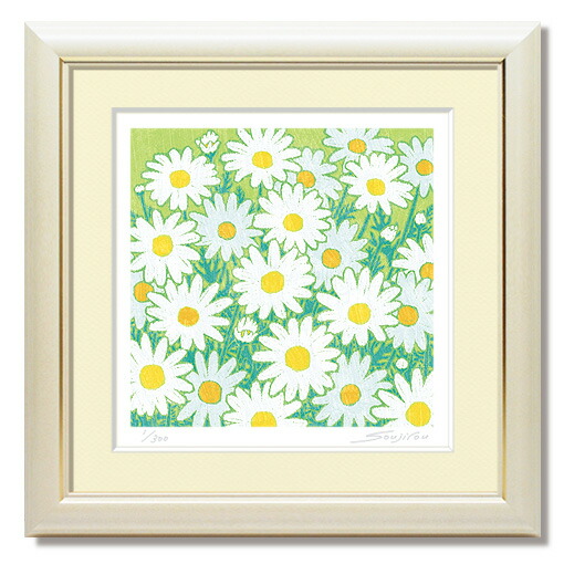 絵画 白のマーガレット 版画 玄関 リビング 額入り 花の絵 プレゼント お祝い 床の間 和室 洋間 壁 アート インテリア 母の日
