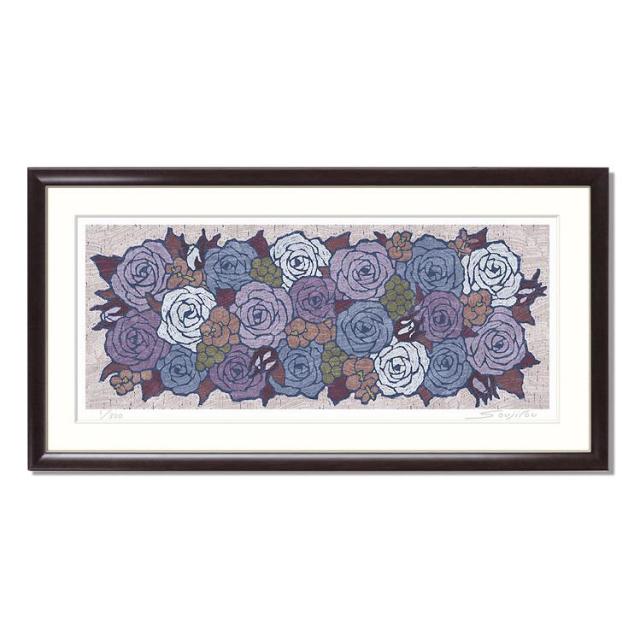 絵画 花の絵 インテリア 壁掛け 版画 横長 風水 玄関 おしゃれ 額入り 薔薇のスワッグ 額入り 花の絵 プレゼント お祝い 床の間 和室 洋間 壁 アート インテリア 母の日