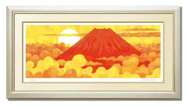 光明赤富士絵画 版画 玄関 リビング 額入りプレゼン ト お祝い 床の間 和室 洋間 壁 アート インテリア 運気が上がる絵 風水