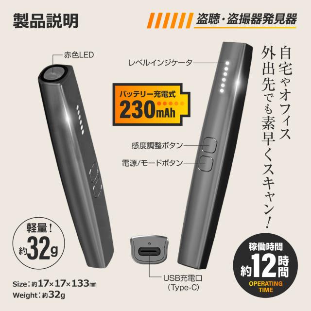 ★コンパクトで持ち運びに便利な盗聴、盗撮器発見器!旅行や出張などで大活躍!★