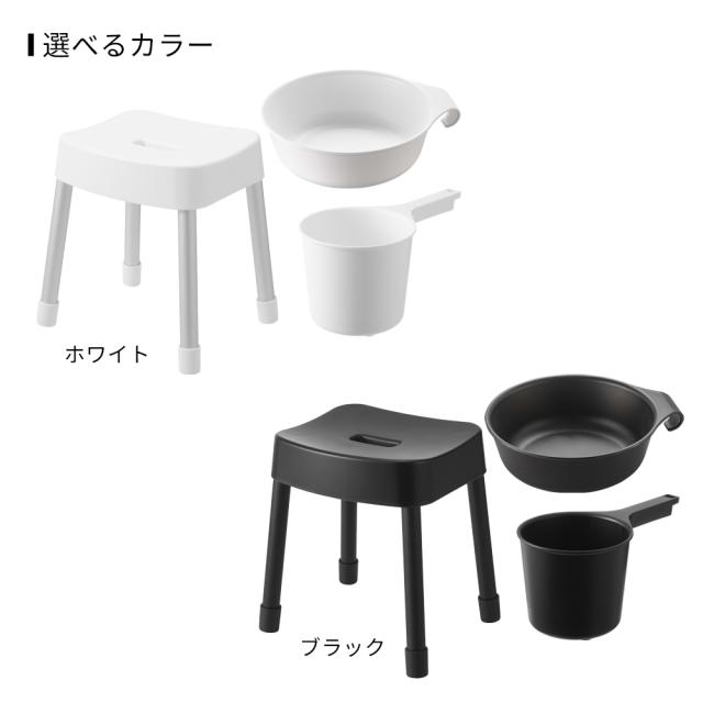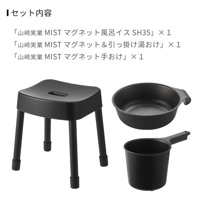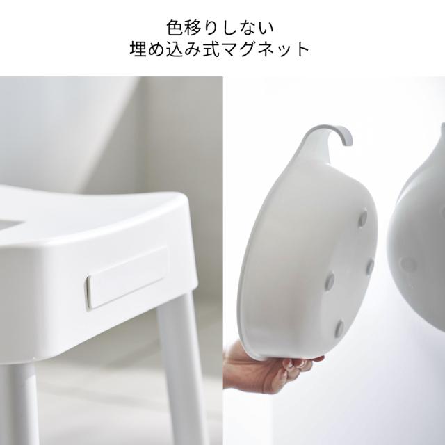 山崎実業 MIST ミスト マグネット風呂イス+湯おけ+手おけセット 座面高さ 35cm ホワイト / ブラック | Yamazaki 風呂椅子セット 風呂桶 バスチェア 磁石 湯桶 洗面器 風呂おけ 壁面 収納 浮かせる収納 掛け収納 白 黒