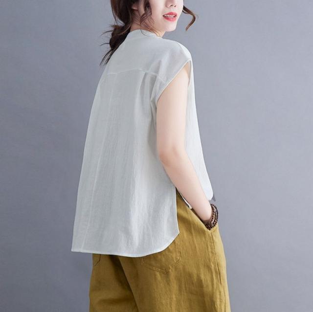 チュニック レディース 大きいサイズ トップス 袖なし Tシャツ シャツ ブラウス 綿麻 カジュアル 無地 夏新作
