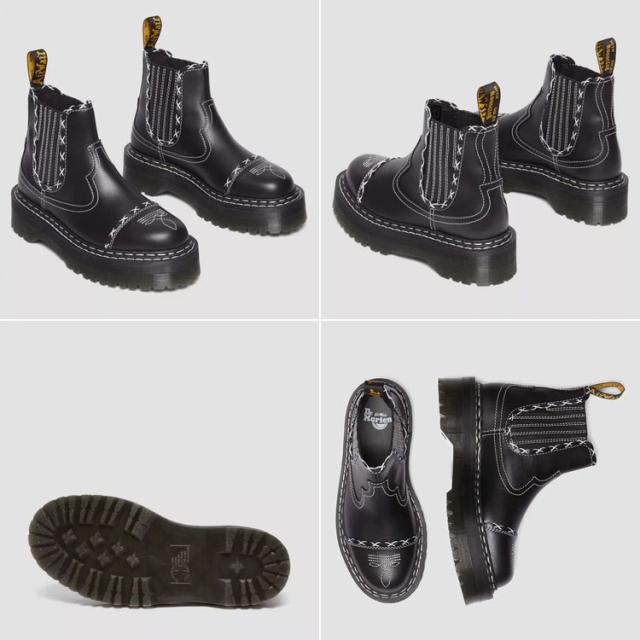 ドクターマーチンのクラシックなシルエットに、ウエスタンとサブカルチャーの要素を織り交ぜたプラットフォームブーツです。