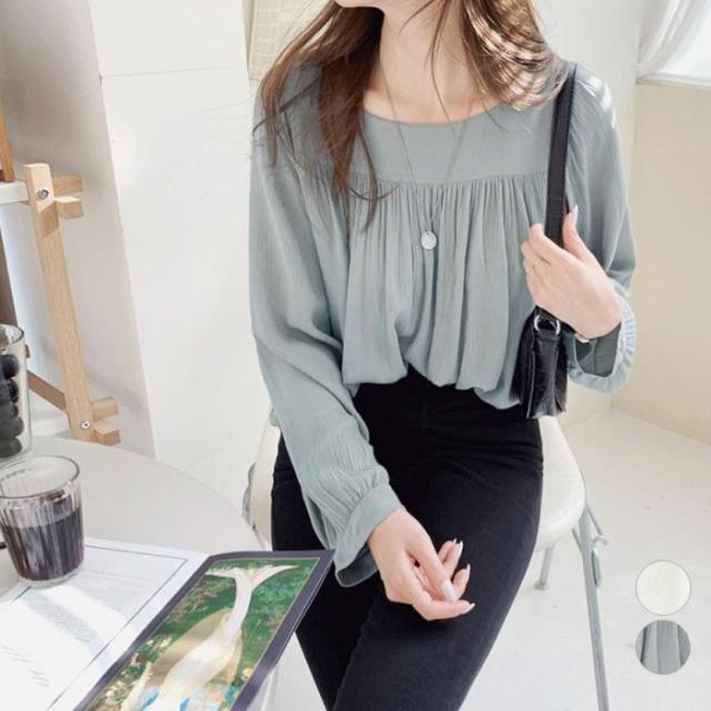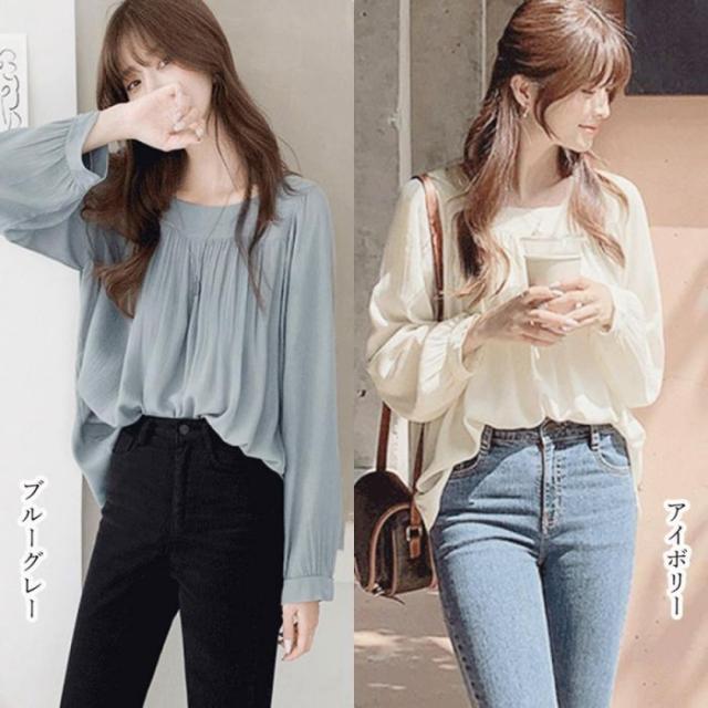 レディース シアートップス ブラウス オフィス プリーツ 通勤 OL シフォン 長袖 ふんわり ゆったり フェミニン