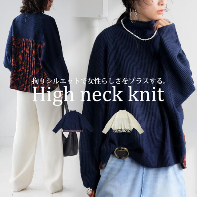 【検索ワード】異素材切り替えニット ニット レディース トップス 長袖 ハイネック 畦編み ドルマン ドルマンシルエット プリーツ 布帛 ニット素材 柄 無地 異素材 切り替え ドッキング 前後差 バックデザイン ゆったり シンプル きれいめ 上品 高級感 落ち感 ナチュラル 体型カバー 細見え 着痩せ 大きめ 大きいサイズ セーター ニットトップス デザイントップス antiqua アンティカ 大人 おしゃれ 10代 20代 30代 40代 50代 60代 春 秋 冬 お洒落 カジュアル かわいい かっこいい あんてぃか