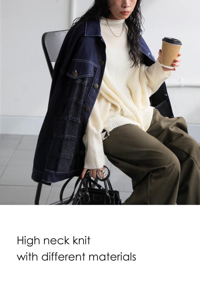 異素材ドッキングが今っぽい『異素材切り替えハイネックニット』