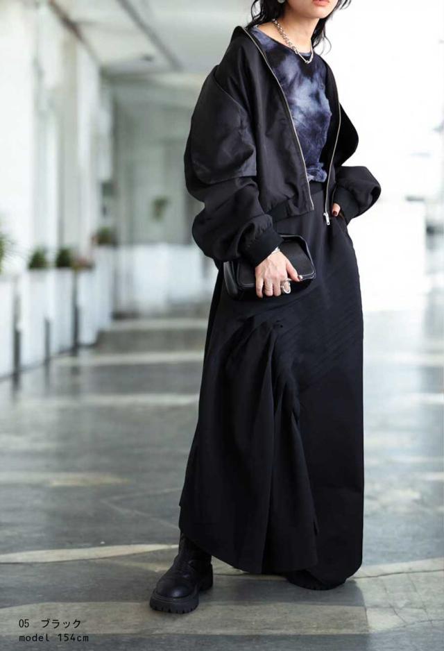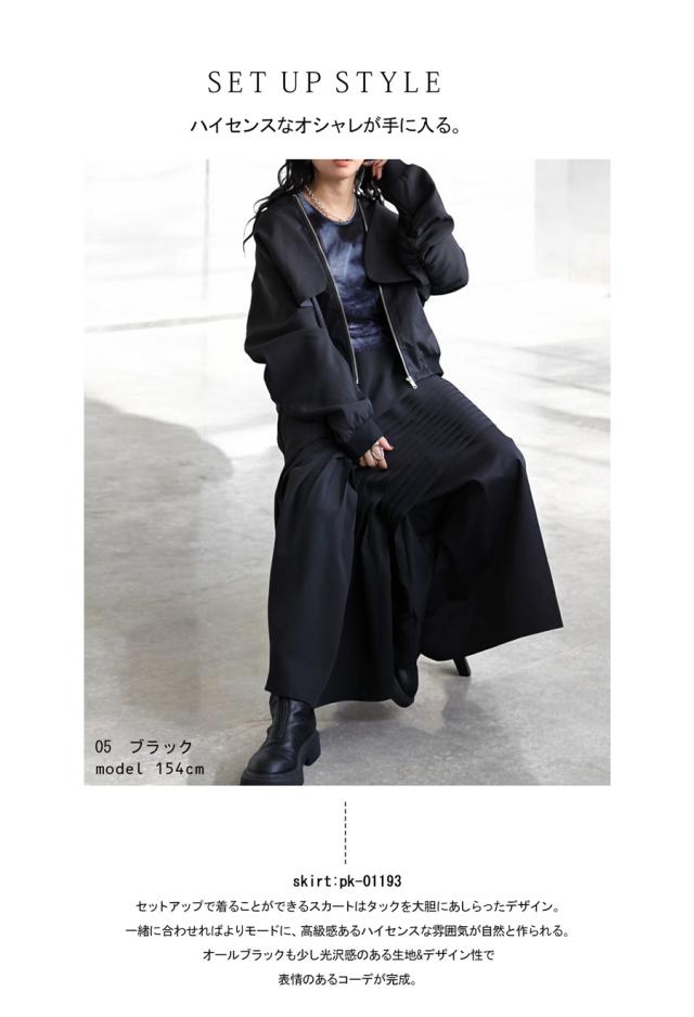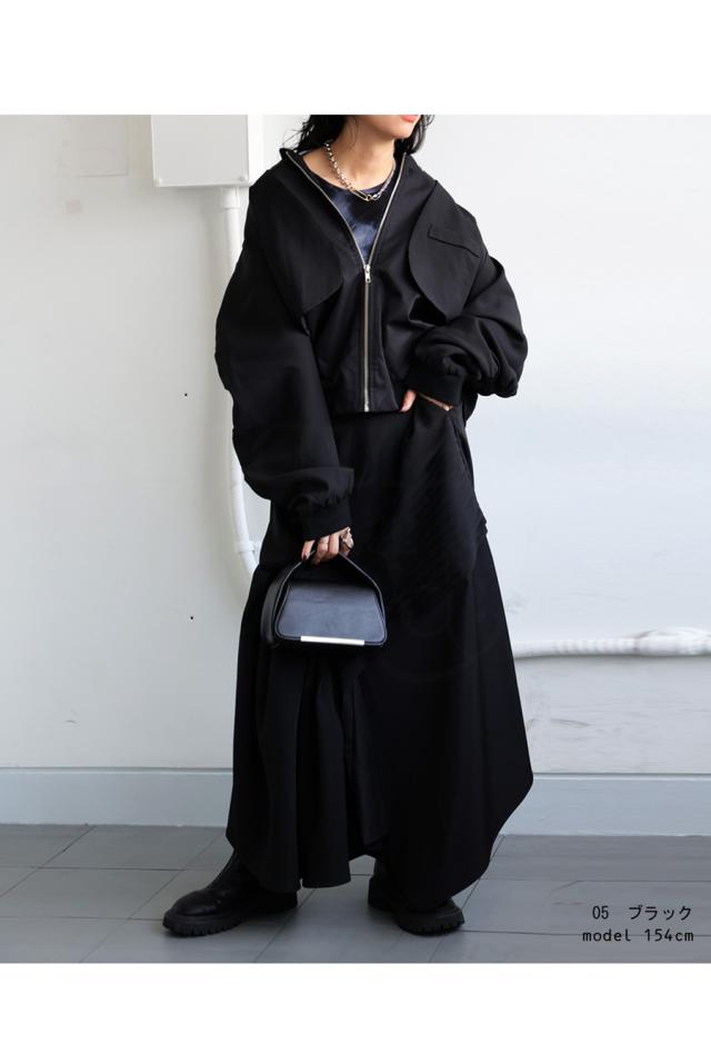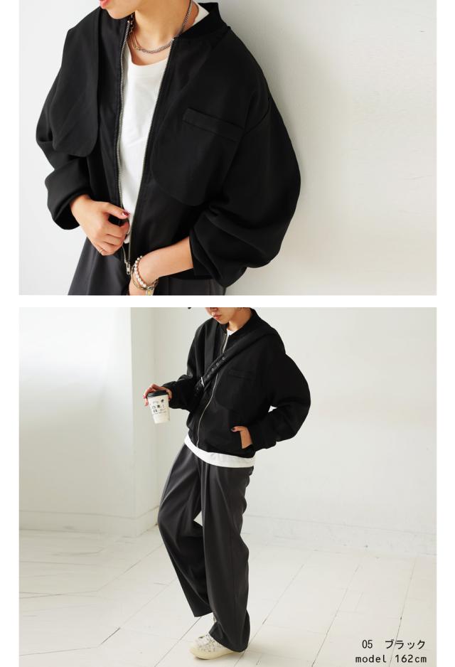pk-01203 長袖 セットアップ ノーカラー リブ ポケット付き ジャンパー ミリタリージャケット MA-1 レイヤード風 前開き ゆったり シンプル モード ミリタリー 体型カバー 大きめ