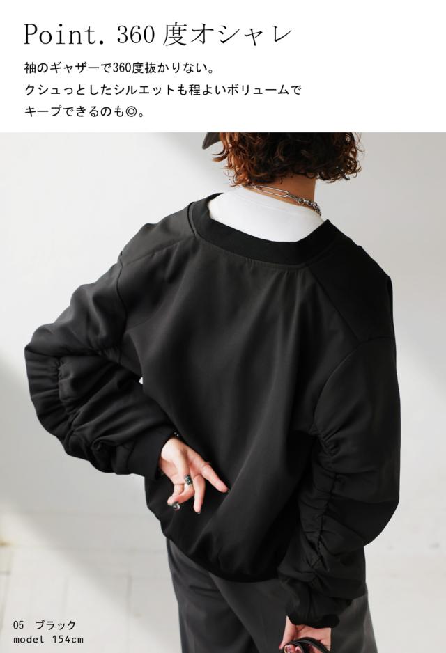 フロントデザインと袖のギャザーで絶妙なバランスがこなれ感UP。