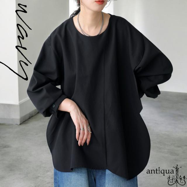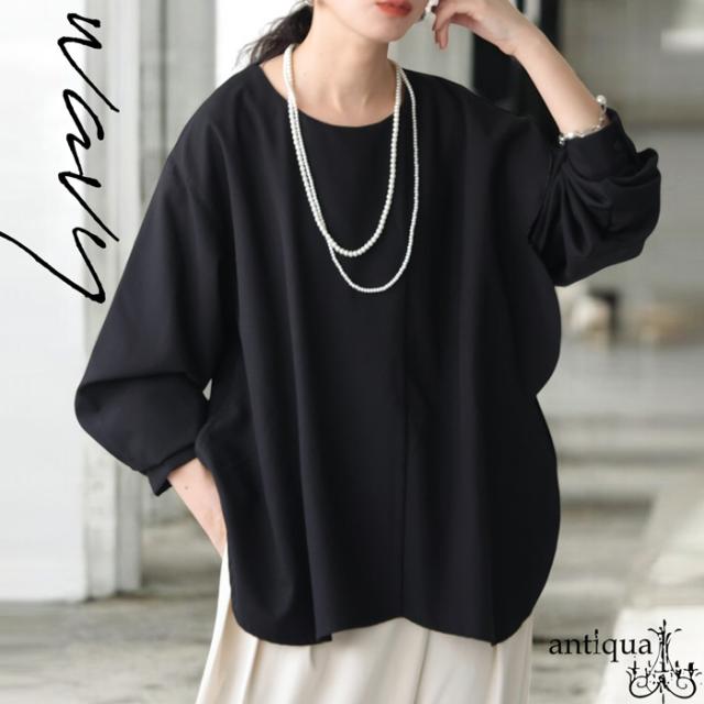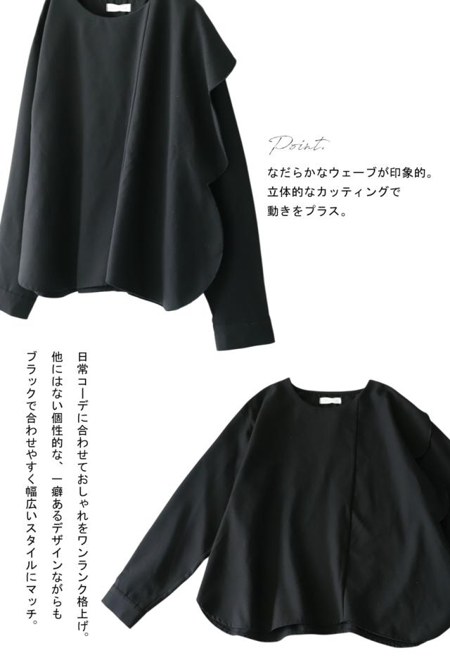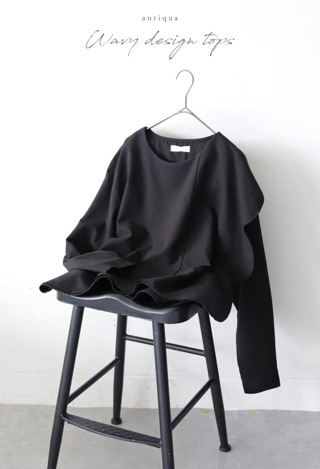 【検索ワード】ウェーブデザイントップス レディース トップス 長袖 無地 変形 個性的 ゆったり クルーネック 丸首 ウェーブ カッティング レイヤード風 バルーン ひらひら 落ち感 アシメ アシンメトリー モード 上品 きれいめ 高級感 アレンジ 着痩せ 体型カバー シワになりにくい 綿 コットン 綿混 半円 ウェーブ ウェービーカット オンオフ オケージョン オフィス ブラック 黒 antiqua アンティカ 大人 おしゃれ 10代 20代 30代 40代 50代 60代 春 秋 冬 お洒落 カジュアル かわいい かっこいい あんてぃか