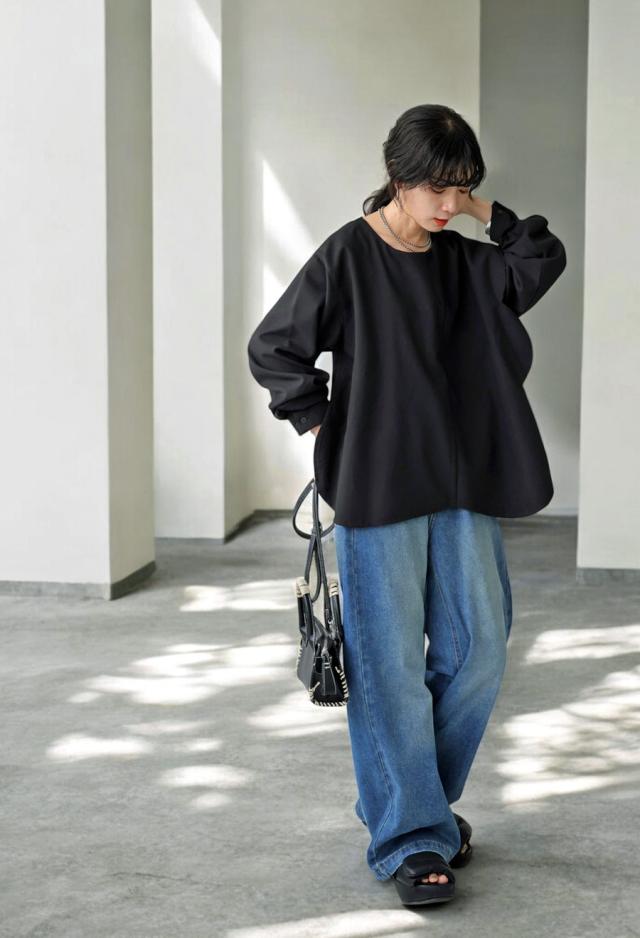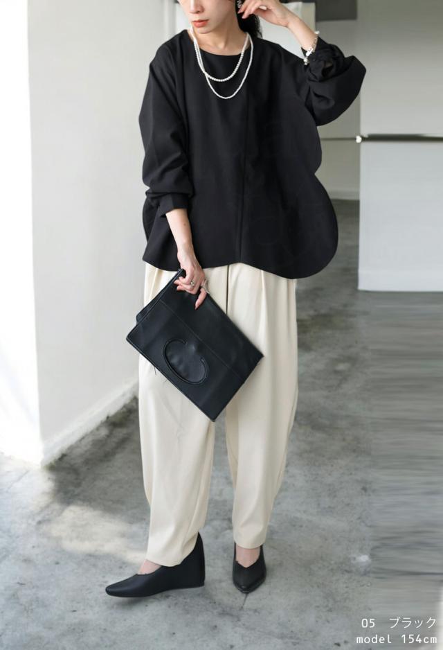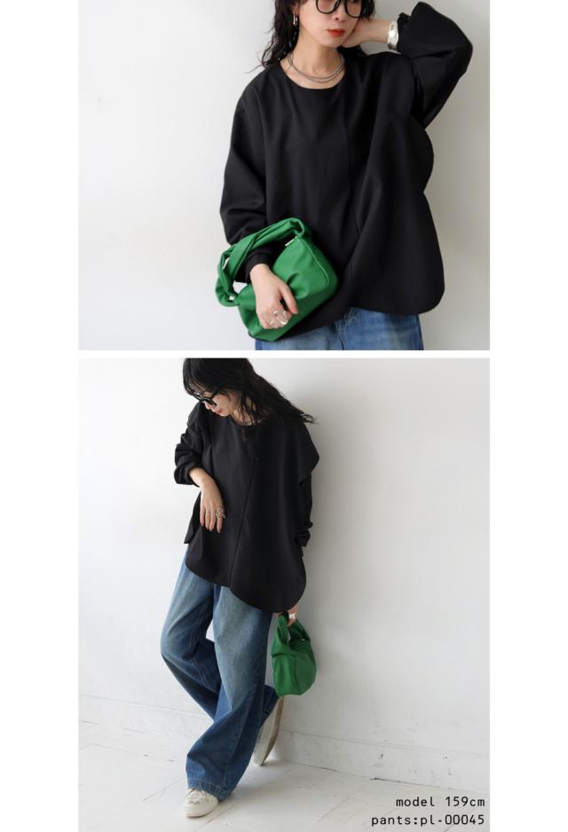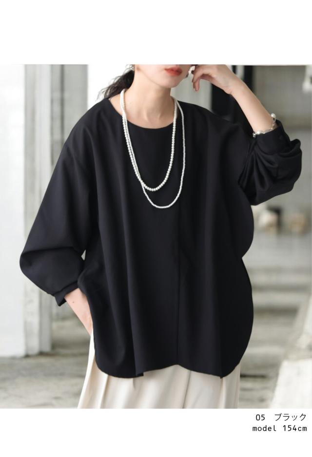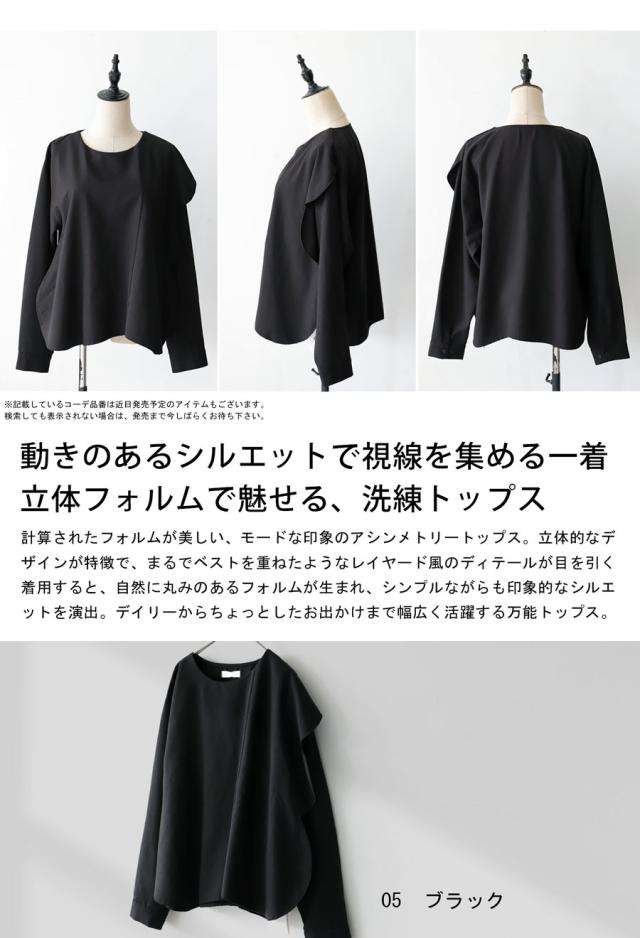 pk-01191 変形 個性的 ゆったり クルーネック 丸首 バルーン ひらひら 落ち感 アシメ アシンメトリー モード 上品 きれいめ 高級感 アレンジ 着痩せ 体型カバー シワになりにくい