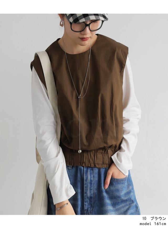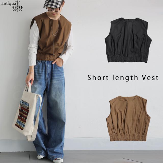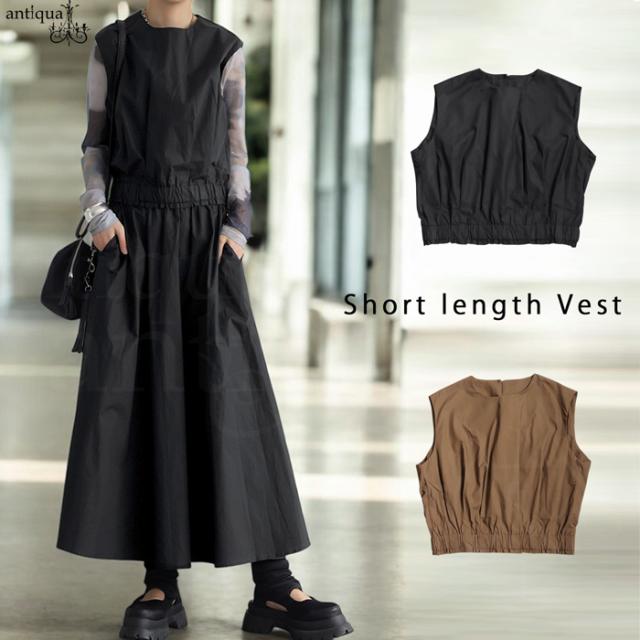 【検索ワード】ショート丈ベスト ベスト レディース トップス 無地 クルーネック 丸首 ゆったり セットアップ レイヤード 重ね着 ノースリーブ ショート丈 ナイロン 着痩せ 細見え 体型カバー 大きめ 大きいサイズ モード スポーティー 機能性 すっきり見せ 涙開き バックデザイン シャーリング 切りっぱなし デザイン性 ギャザー 薄手 マット 軽量 ブラウン 茶 ブラック 黒 antiqua アンティカ 大人 おしゃれ 10代 20代 30代 40代 50代 60代 春 夏 秋 冬 オールシーズン お洒落 カジュアル かわいい かっこいい あんてぃか