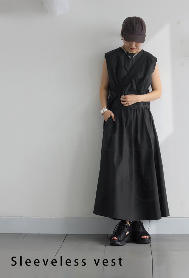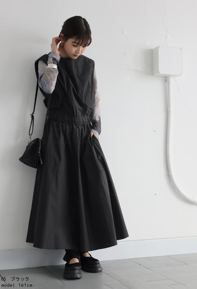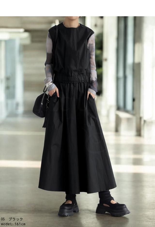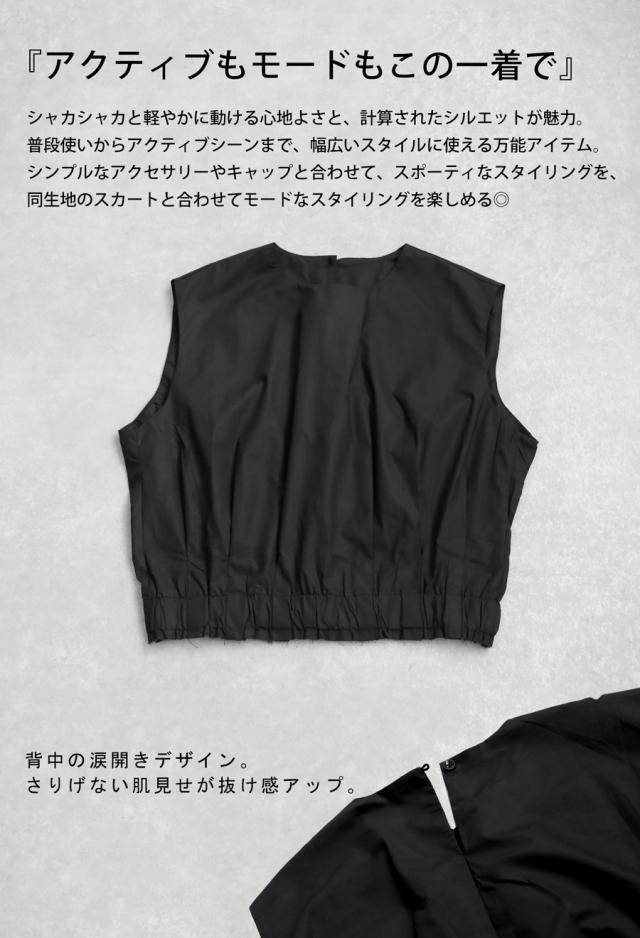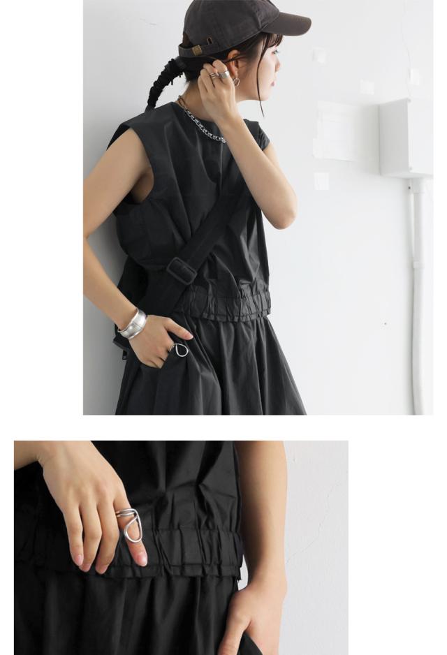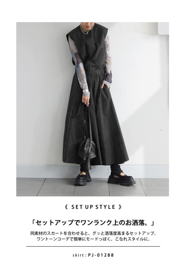 pj-01287 無地 クルーネック 丸首 ゆったり セットアップ レイヤード 重ね着 ノースリーブ ショート丈 ナイロン 着痩せ 細見え 体型カバー 大きめ 大きいサイズ モード スポーティー