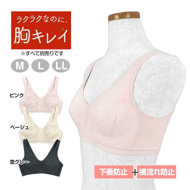 24時間 楽な着心地で 下垂 横流れ を防止し 美胸 をサポートする かぶりタイプの ブラジャー です 。バイリーンカップで優しい付け心地。脇側の補正シートで横流れ防止。アンダーの補正シートで下垂防止。本体はお肌に優しい綿混素材。ノンワイヤー だから過度な締め付けもなく寝ている間も リラックス できる快適な付け心地です。ストラップ調節不可。カップ取り外し不可。