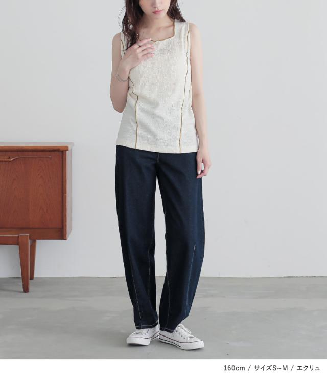 ■デザイン 配色メローの切り替えラインがポイントになったタンクトップ。スクエアネックですっきり洗練された印象の一枚です。凹凸感のある生地を使用することで身体のラインを拾いにくいデザイン。 ■素材 ポコポコとした凹凸感のある、さらりとした肌触りの生地。伸縮性があり、ストレスフリーな着心地です。 ※全体的に小さな穴が開いておりますが、生地の風合いの一部となっております。生地の特性となりますため、予めご了承の上ご購入いただきますようお願いいたします。 ※こちらの商品は透け感がございますので、インナーに注意してご着用ください。 ■コーディネート シアートップスや透かし編みニットなどのインナーに着用するのはもちろん、ジャケットやシャツを羽織って配色メローをちらりと見せるコーディネートもおすすめです。 |