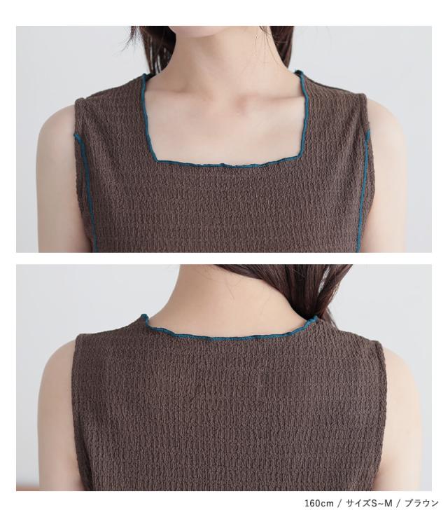 『配色メロースクエアタンクトップ』※メール便可※【5】[ タンクトップ トップス インナー レディース ノースリーブ 配色 メロー スクエアネック レイヤード 重ね着]