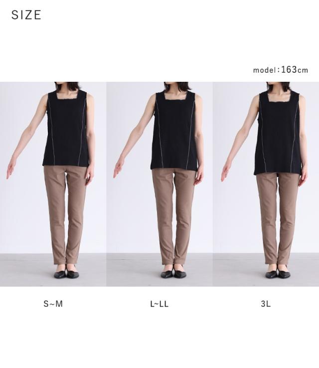 | staff:C/158cm B87 W70.5 H92.5 【普段着用】 Tops: M Bottoms: M | 【S〜M】 着丈:ヒップ真ん中位 腕周り:ジャスト バスト:ジャスト 全体:ジャスト ジャストサイズですが伸縮性のある生地なので窮屈感なく着られました。 【L〜LL】 着丈:ヒップ真ん中より下位 腕周り:ややゆったり バスト:ややゆったり 全体:ややゆったり 程よいゆとりでスッキリ着られました。 【3L】 着丈:ヒップ下少し見える位 腕周り:ゆったり バスト:ゆったり 全体:ゆったり ゆったり着られました。アームホールから下着が見えることもないので一枚で着られました。 私の場合は、Sを選びます。 |