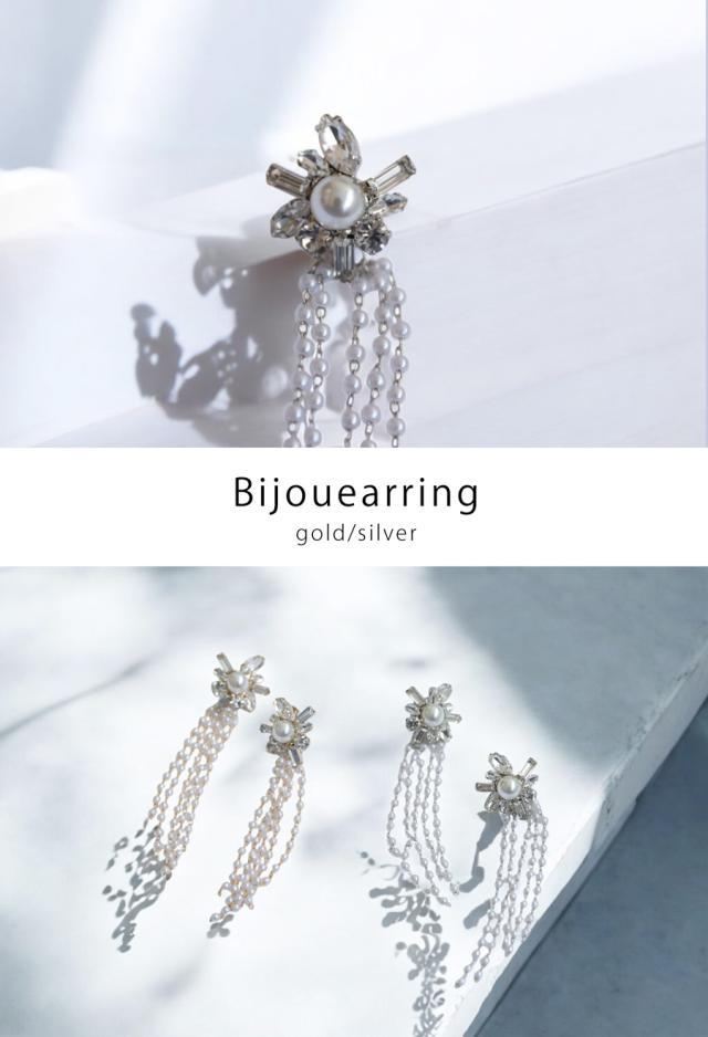顔周りに可愛さをプラスし、レディ感をグッと高めてくれるビジューイヤリング。