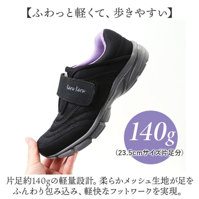 | 商品説明 | 【すぽっと履けて、履き心地ラクラク】 ・羽根のような軽さで、疲れた足をリラックス。「かるかるリラックス(甲ベルトマジックタイプ)」 【ふわっと軽くて、歩きやすい】 ・片足約140gの軽量設計。柔らかメッシュ生地が足をふんわり包み込み、軽快なフットワークを実現。 ・※23.5cmサイズの商品、片足分の重量です。 【足がよろこぶ、もっちりソール】 ・足やひざにかかる負担を軽減する弾力性抜群の特殊配合ソールを採用し、クッション性がUP! 【面ファスナーで“すぽっ”と履ける】 ・履き口が大きく開く面ファスナー仕様。つま先がすぽっと入り玄関先での脱ぎ履きがスムーズ。 【ゆったり履ける3E幅広設計】 ・足幅広く、甲が高めの方でもゆったり履きやすい!つま先まで締め付け感のない3E幅広設計。 【柔らかな履き口がフィット】 ・履き口周りも柔らかなクッション生地で仕上げ、足首やかかとを靴ズレから優しく保護。 【オールシーズン快適な素材感】 ・内側の生地は通気性のよいオールメッシュ生地仕上げ。長時間履いてもムレにくく、サラリと快適。 【滑りにくいアウトソール】 ・屈曲性に優れ、滑り止めの凹凸を刻んだアウトソールが、雨に濡れた路面もしっかりグリップ! 【普段履きをお洒落にワンランクUP】 ・光沢のあるメッシュにスエード調合皮を合わせたお洒落なデザインで誰でもすぐに垢抜けスタイル。 【様々なシーンにオススメ】 ・タウンユースに気軽に履けるのはもちろん、ウォーキングやフィットネス、リハビリシューズにも。 |