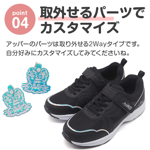 スニーカー キッズ ジュニア 靴 黒 ブラック ベージュ 軽量 軽い 2way パーツ付 可愛い おしゃれ クッション マジックテープ ゴム紐 女の子 小学生 通学 学校 イコールミー =ME ME-3741