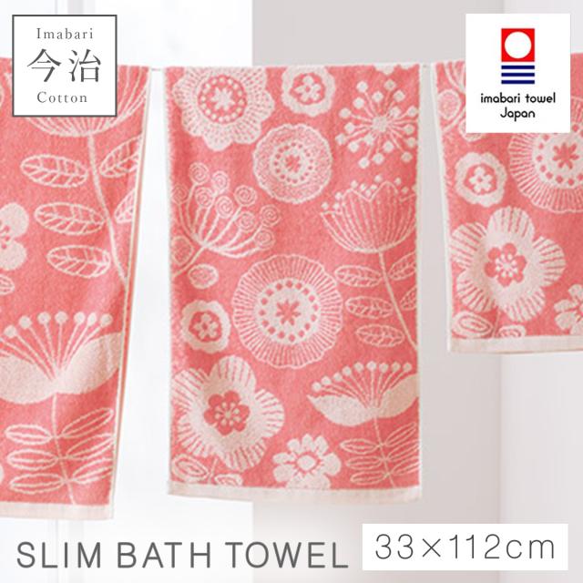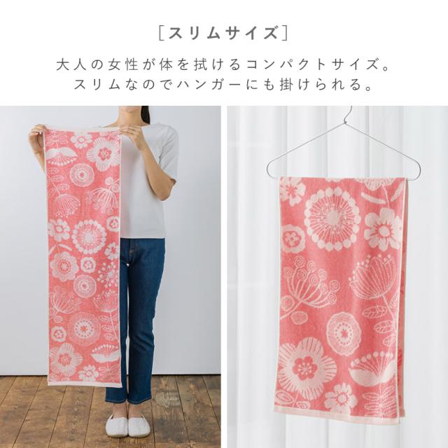 ミニバスタオル 小さめ 今治 北欧 かわいい 花柄 33×112cm 今治タオル 日本製 綿100% 国産 乾きやすい ふわふわ おしゃれ 今治タオルブランド 今治タオルブランドスリムバスタオル フルール