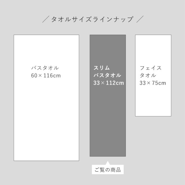 33×112cmで、通常のバスタオルより幅が狭いサイズ。お子様や大人の女性でも体を拭くにも充分な大きさです。