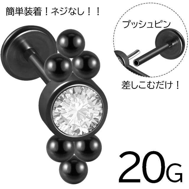 [ 20G 差しこむタイプ ] プレイド ブラック プッシュピンラブレット スタッド 1個販売 ボディピアス 20ゲージ 0.8mm 20ga サージカルステンレス316L製 黒色 キュービックジルコニア ジュエル ストーン 石付き インターナル ネジ無し 螺子無し 丸玉 ラウンドボール