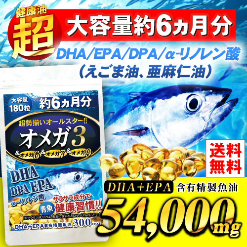 DHA EPA サプリ 必須脂肪酸 送料無料 超勢揃いオールスター オメガ3 サプリメント 約6ヵ月分 180粒 えごま油 亜麻仁油 亜麻仁油 アマニ油