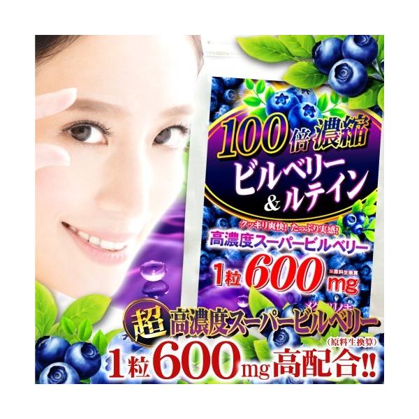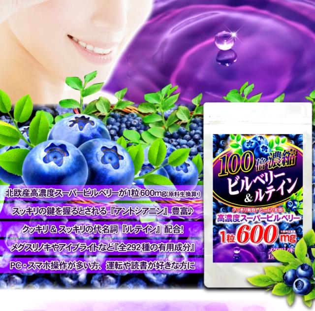 ビルベリー ルテイン メグスリノキ アイブライト アサイー ヒアルロン酸 酵素 ビタミン サプリ サプリメント お試し 1粒600mg 高配合 メール便 送料無料 100倍濃縮ビルベリー&ルテイン