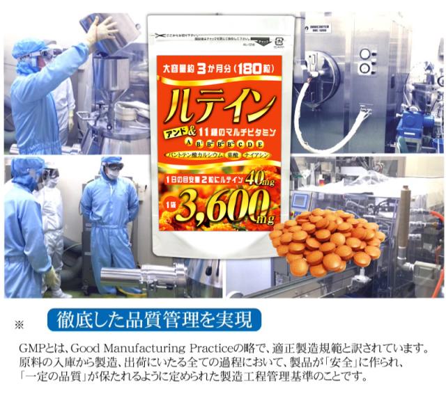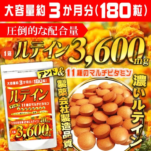 ルテイン サプリメント サプリ 送料無料 マルチビタミン大容量 約3ヵ月分 180粒 ルテイン40mg GMP認定工場製造