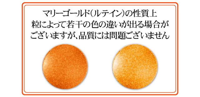 | 原材料名 | マリーゴールド色素、結晶セルロース、微粒二酸化ケイ素、ビタミンC、抽出ビタミンE、ナイアシン、パントテン酸カルシウム、ビタミンB1、ビタミンB6、ビタミンA、ビタミンB2、葉酸、ビタミンD、ビタミンB12 |