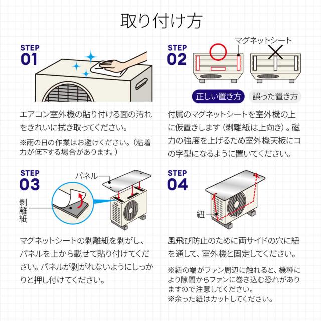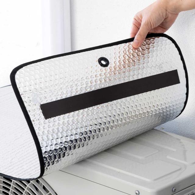 室外機カバー エアコン 室外機 遮熱パネル マグネット式 紐付き ( エアコン室外機カバー カバー 日除け 日光対策 直射日光 アルミ製パネル 庭 ベランダ 省エネ 節電 簡単取付 貼るだけ )