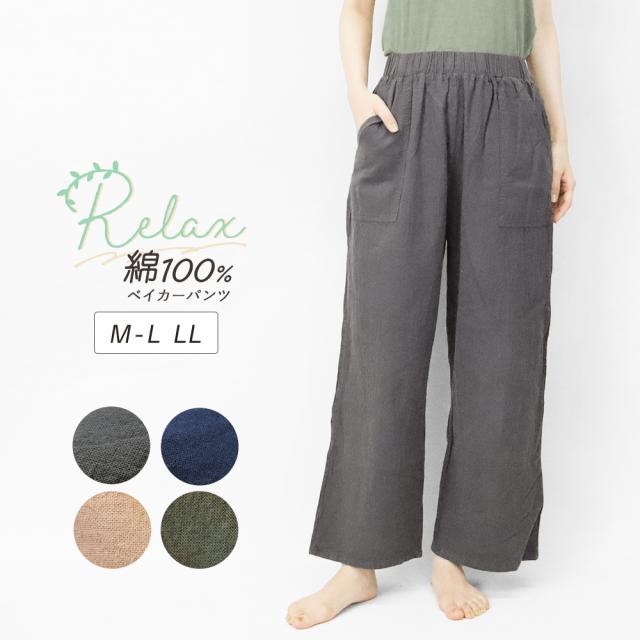 ベイカーパンツ 綿100% ボトムス ウエストゴム リラックス ルームウェア ゆったり ロングパンツ *2