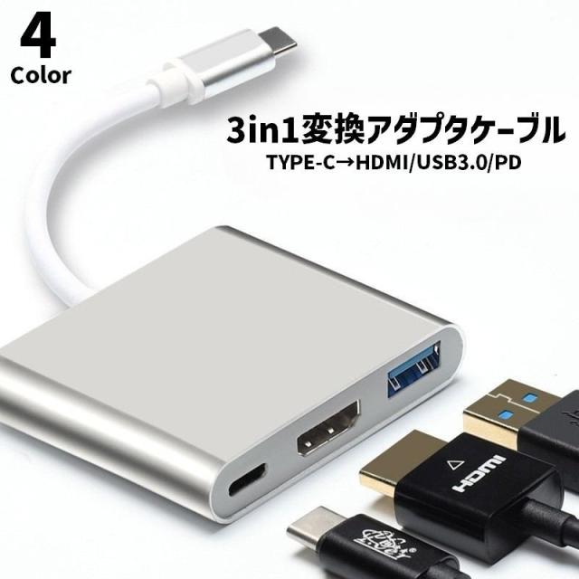 変換アダプター ケーブル 変換コネクター 3in1 TYPEC パソコン周辺機器 HDMI USB 小型 持ち運び ポータブル